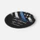 Este design apresenta uma bandeira da polícia com listras pretas e brancas, e uma fina faixa azul de linha também. O texto "A Legenda está se aposentando" fica acima do nome personalizável do polícia oficial aposentado, xerife, capitão ou chefe. Celebre este marco em estilo!
