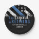 Este design apresenta uma bandeira da polícia com listras pretas e brancas, e uma fina faixa azul de linha também. O texto "A Legenda está se aposentando" fica acima do nome personalizável do polícia oficial aposentado, xerife, capitão ou chefe. Celebre este marco em estilo!