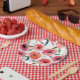 Prato De Papel Pópias Pintadas Vermelhas Padrão Floral