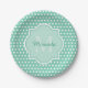 Seja bonitinho e giro com estas placas de papel padrão de bolinhas branca e verde de menta chique com um monograma moldado por na moda. Adicione um toque personalizado a este design bonito adicionando o nome e a inicial monograma da garota partidária.