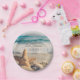 Placas de papel de casamento de praia com uma foto de uma estrela em uma praia arenosa no oceano. Texto totalmente personalizável.
