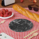 Prato De Papel Preto Branco e Mármore Prata Moderno Glam