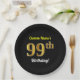 Prato De Papel Preto, Faux Dourado 99º Aniversário + Nome Persona