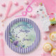 Pretty Stripped Lavender and Floral paper plate, change the text yourself when ordering.