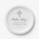 Prato De Papel Primeira Comunhão da Cruz Floral Branca Elegante