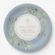 Prato De Papel Primeira Comunhão em Azul Empoeirado com Verdor