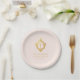 Prato De Papel Primeira Comunhão Menina Rosa Brasão Falso Dourado