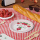 Estas placas de morango doce e de papel cor-de-rosa são perfeitas para tempo de bolo ou lanches de festa na grande celebração do seu pequenino. (Trabalho de arte Gerado por AI)