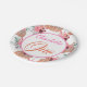 Folga no outono floral, rosa floral de abóbora, prato de papel de primeiro aniversário com seu nome personalizado em um bonito roteiro cor-de-rosa e a palavra "Um" em um elegante roteiro laranja. Você pode adicionar facilmente o nome de sua escolha e alterar a cor e a fonte usando a opção personalizar!