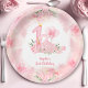 Prato De Papel Primeiro aniversario branco-rosa Rosa cor-de-rosa