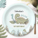 Prato De Papel Primeiro aniversario de desenho animado azul Dinos