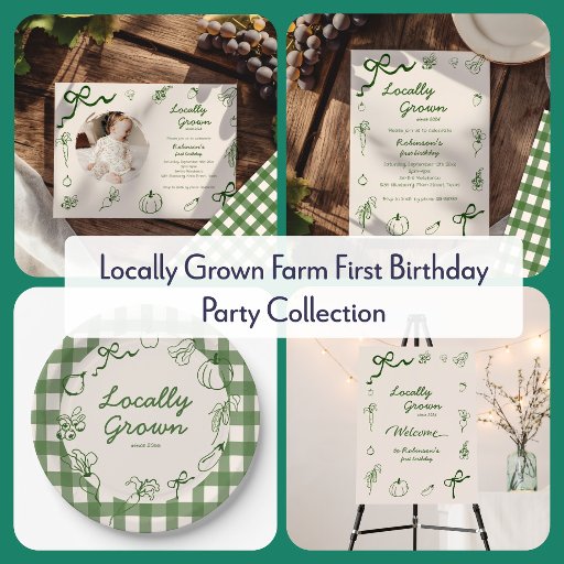 Sirva as suas pequenas guloseimas de aniversário em estilo com estas charmosas placas de papel com tema de fazenda criadas localmente. Apresentando ilustrações de vegetais verdes desenhados à mão — como cenouras, rabanetes, abóboras e ervilhas — desenhando as palavras "Locally Grown" em um centro de pincel suave com uma fronteira clássica de gingham verde. Perfeito para um aniversário de bebês rústico, festa de jardim ou celebração de mercado de fazendeiros. Estas placas não são apenas bonitas, mas também funcionais, criando um olhar perfeitamente coordenado quando combinado com o resto da nossa coleção de aniversários Locally Grown.