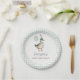 Apresentando uma ilustração encantadora de um charmoso pato em uma gravata de arco e chapéu de festas, esta placa de papel é moldada por uma borda verde macia de gingham para um olhar caprichoso e rústico.