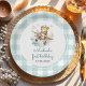 Placas de papel para primeiro aniversario de Pastel Gingham, Urso de Teddy