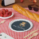Sirva o estilo do eterno com nossas placas de papel Beary First Birthday, projetadas para combinar com o tema do seu urso de pré-disquete. Apresentando a mesma ilustração encantadora de um urso em uma blazer e suéter, essas placas são colocadas sobre um fundo azul marinho com um clássico borda verde-floresta e xadrez-tartan. A frase Beary First Birthday é escrita em script retrô, com seu nome em negrito slab serif abaixo. Perfeito para adicionar um toque lúcido e divertido à sua mesa de aniversário.