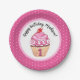 Prato De Papel Primeiro aniversario Feliz Cupcake Rosa Rosa Bonit