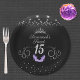 Personalize seu doce sonho 15, Quinceanera dia com esta design da coleção Quinceanera. As luzes de cordas em um fundo preto acendem no topo. Princesa tiara acima de um nome com Sweet 15 e calçados lavandas por baixo. Adicione sua data também. Rode os motores de relva prateada nos lados, mais uma dispersão de brilho prateado no fundo para aquele olhar mágico.