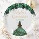 Esta elegante e glamourosa placa de aniversário da Quinceañera apresenta uma bela princesa com cabelo escuro num vestido verde escuro de bola. O texto combina o script manuscrito e as fontes sans serif modernas para um aspecto elegante e sofisticado. Os arranjos florais e o confete de ouro criam a mistura perfeita de rústicos e quicos. Gráficos por www.etsy.com/uk/shop/SunflowerDayLove