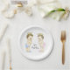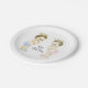 Pratos de festa de bebê gêmeos príncipe e princesa adoráveis. Estes pratos de papel para festa de bebê gêmeos menino e menina podem ser personalizados com texto no estilo de fonte e cor de sua escolha, e você pode escolher a cor do fundo.