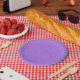 Prato De Papel Purple textured surface with swirling pattern