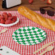 Coma essas placas de papel de pranchas brancas e verdes. Estas são excelentes para a graduação ou festa de aniversário. Vestir sua configuração de mesa com um olhar clássico.