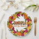 Uma Placa De Papel Laranja Arredondada Projetada Para Um Banquete Colorido De Ação De Graças Até O Seu Centro De Bolhas