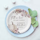 Queda apaixonada por pratos de papel personalizados, impressos, monogramas, monogramas, modelo, pastel, cor-de-água castanha, folhagem de bolos, com dahlias e pratos modernos, decoração de mesas de chás de fraldas, decoração personalizada