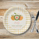 Sirva sua celebração em estilo com estas placas de chá de fraldas "A Maçã de Nossos Olhos" adoráveis, com um trio doce de maçãs verdes e amarelas suaves com um detalhe cardíaco vermelho, enquadrado por uma risca verde e amarela alegre, como gingham. Perfeito para um partido neutro em termos de gênero, estas placas podem ser personalizadas com o nome da futura mãe e a data do chá, acrescentando um toque atencioso à sua decoração mesa. Projetados para coordenar lindamente com convites e suprimentos de festas correspondentes, eles são ideais para um chá de outono, pomar ou de temas rústicos, combinando encanto festivo com conveniência prática.