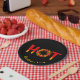 Quente com a letra O feita de um círculo de chama com pimentões picantes.