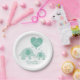 Prato De Papel Querida Adorável Chá de fraldas de Elefante Verde