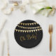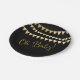 Chapas de papel de chá de fraldas de bebê com faixa de ouro bonito e brilho de ouro Oh Baby em um fundo preto. Você pode personalizar com o texto e mudar a cor de fundo neste bonito preto e ouro Oh Baby!, uma placa de chá de fraldas neutra do gênero.