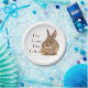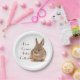 Esta linda placa de coelho mostra uma foto adorável de um coelho rabo-de-algodão bebê com a mensagem, "Aqui vem Peter Cottontail." Adicione sua própria mensagem personalizada para tornar este design seu!