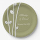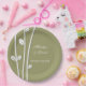 Prato de papel Ramos Brancos Folhados com três ramos brancos elegantes com folhas brancas contra um fundo verde oliva. © Manhã 6