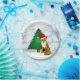 Aqui está um prato de inverno divertido que apresenta uma raposa na floresta com árvore de Natal e neve fofa. Você pode personalizar este prato com seu próprio texto. Este prato seria perfeito para a festa de Natal das crianças.