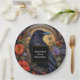Prato De Papel Raven Preto com Flores Design Gótico Aniversário