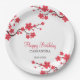 Prato De Papel Red Cherry Blossom Sakura Floral Aniversário