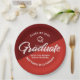Be proud, rejoice and showcase this milestone of your favorite grad! Celebrate with these simple, modern yet retro, minimal custom paper plates. Bold, graphic, white handwritten script calligraphy, sans serif typography and a white hand drawn grad cap icon overlay both a dusty and brick red background. Personalize the custom text with your grad’s name and address. Personalize the custom text with your graduate’s name, class year and school or special message. Available in 2 sizes: 7” or 9”, round or square. Matching invites, thank you cards, hand fans, banners, yard signs and other graduation goodies are also available in this retro and trendy collection. Guaranteed to add stylish fun to their special party!