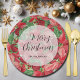 As placas de papel personalizadas apresentam poinsetos vermelhos modernos e elegantes com Feliz Natal e seu nome em letra chic. CORRESPONDENTE a itens na nossa coleção.