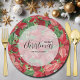 As placas de papel personalizadas apresentam poinsetos vermelhos modernos e elegantes com Feliz Natal e seu nome em letra chic. CORRESPONDENTE a itens na nossa coleção.