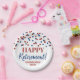 Placas de aposentadoria felizes personalizadas em azul escuro e padrão de confete vermelho.