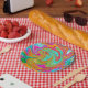 Prato De Papel Retro Abstrato de Grãos Azuis, Laranja e Rosa Quen
