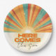 Prato De Papel Retro Aqui Vem O Chá de fraldas Filho