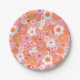 Prato De Papel Retro Boho Rosa Laranja Floral Flores Fofas