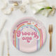 Prato De Papel Retro Groovy One Rainbow Pink