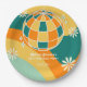 Prato De Papel Retro Groovy Wave Disco Ball Daisy Orange Birthday