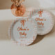 Prato De Papel Retro Orange Hand Drawn Written Bow Baby Shower