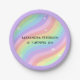 Complete your magical celebration with these trendy Retro Pastel Rainbow party plates! Featuring a dreamy wavy pattern in soft sorbet shades and a stylish lavender purple border, these plates are the perfect addition to a 6th birthday or any 'Groovy' themed party. Personalize easily with your child's name and age for a custom touch that guests will love. High-quality, chic, and designed to make your dessert table shine. Matching invitations and party supplies available in the collection!