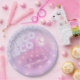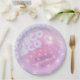 Elegante design de prato de papel personalizado para despedida de solteira disco em belas cores gradientes de lavanda a periwinkle e rosa com uma bola de discoteca funky, fonte retrô glamorosa e fundo de luzes de discoteca cintilantes. Procure ID928 para ver outros produtos desta coleção trendy.