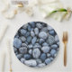 Esse design apresenta uma imagem de um jardim rochoso visto de cima, contendo seixos de várias formas em vários tons de cinza.