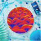 Um bom padrão digital de uma foto de uma exposição no centro Memphis Tennessee, composta por grandes rochas arredondadas. Esta foto foi digitalmente aprimorada para mudar de cores para vermelho brilhante, amarelo e azul escuro.